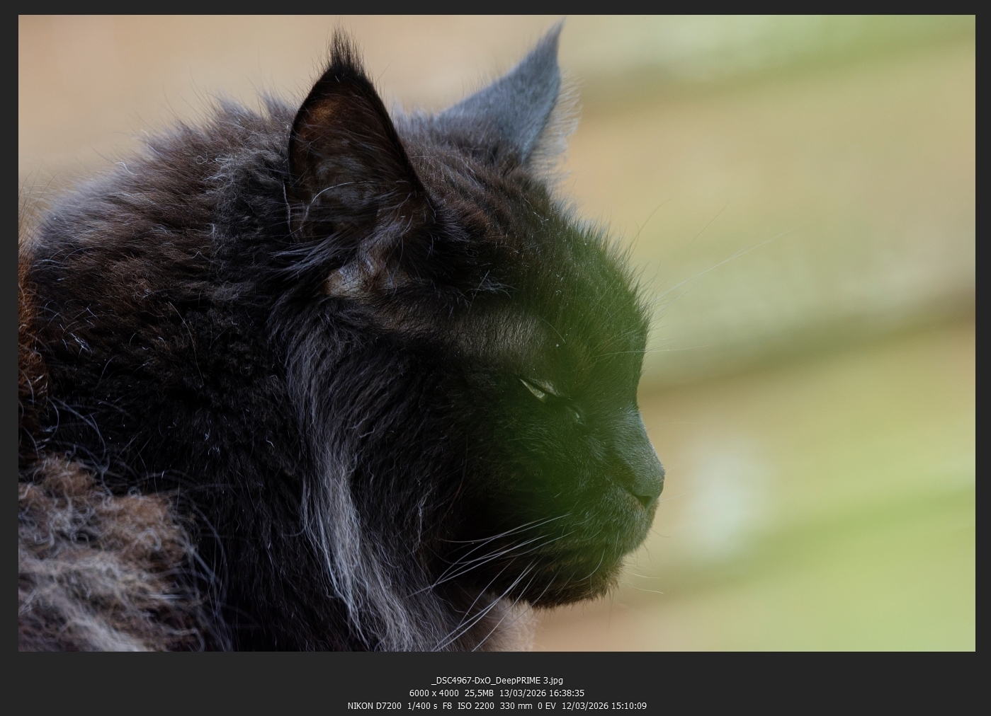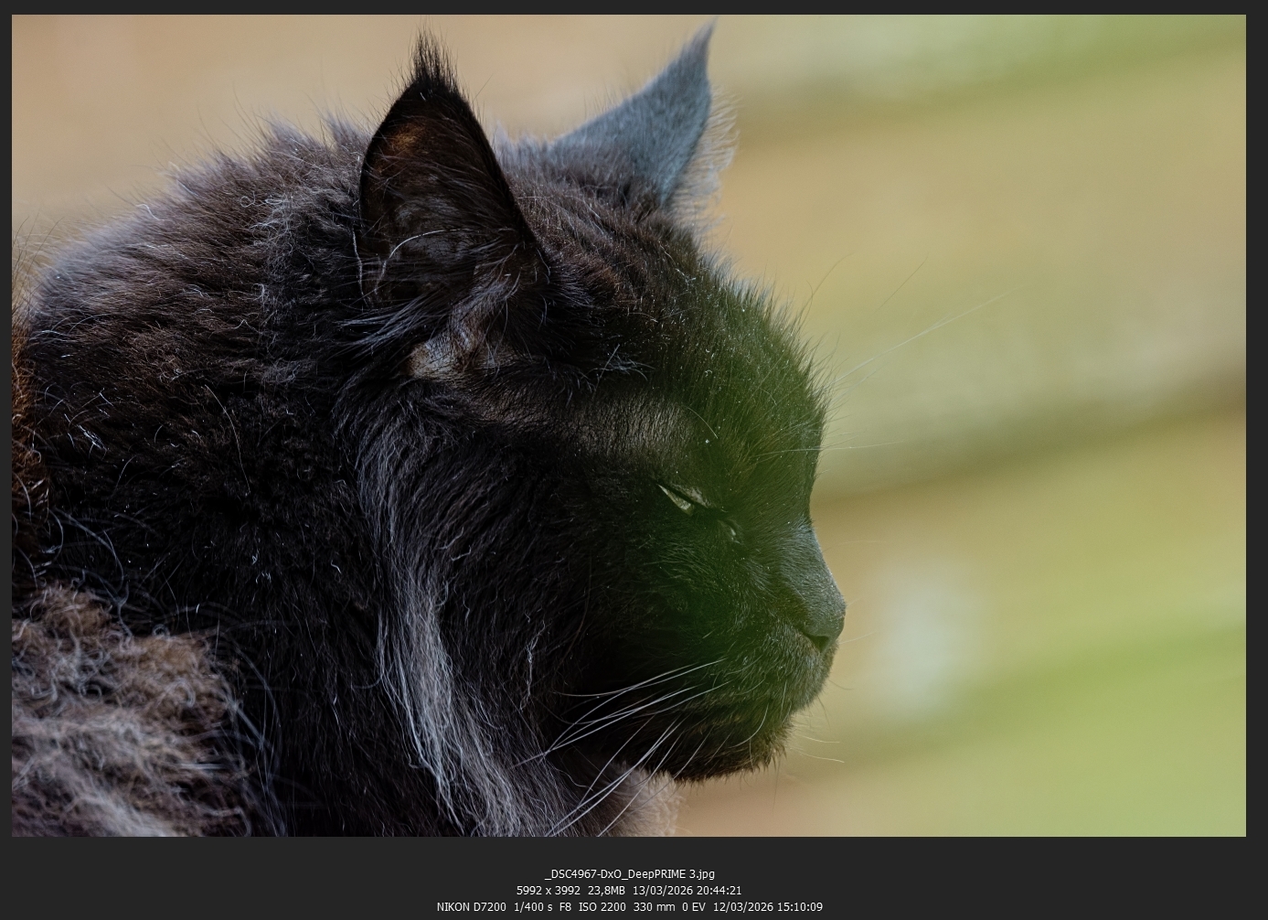 PureRaw est un débruiteur ultra efficace, mais l'intérêt de PureRaw réside aussi dans la correction automatique des défauts des objectifs, particulièrement le manque de piqué, pour pouvoir apprécier la qualité du logiciel il faudrait pouvoir en bénéficier, or le 135-400 de Sigma n'est pas pris en charge.